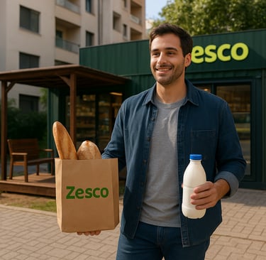 O nome Zesco vem do acrônimo Zero Estoque de Compras. A ideia é simples: com a Zesco, você não precisa se preocupar em encher o carro de compras para estocar em casa. A loja está ali, sempre perto, pronta para atender suas necessidades no momento certo.